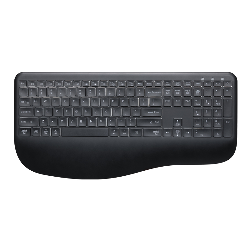 Wave-shaped keyboard with palm rest, 7 color backlight